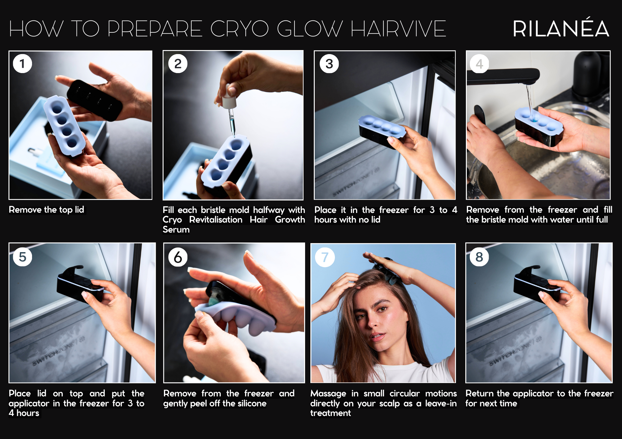 Tip 1: The Cryo Revitalisation Hair Growth Serum can be used on its own either chilled or in room temperature.