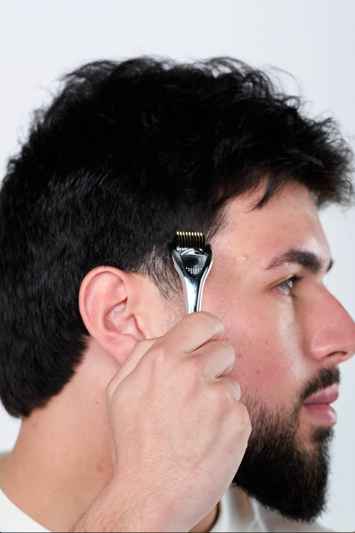 Through the creation of precise micro-abrasions, our Derma Roller boosts the absorption of the Cryo Revitalisation Hair Growth serum and promotes growth factors that invigorate and restore vitality to the hair and scalp.